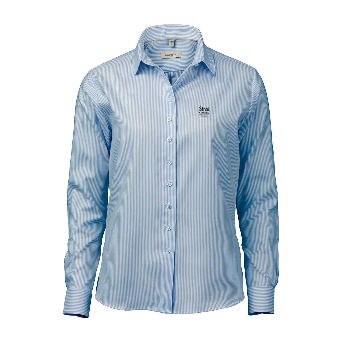 Den har en button-down-krage og OAKMOREs standardknapper i resirkulert polyester med matchende knappetråd.