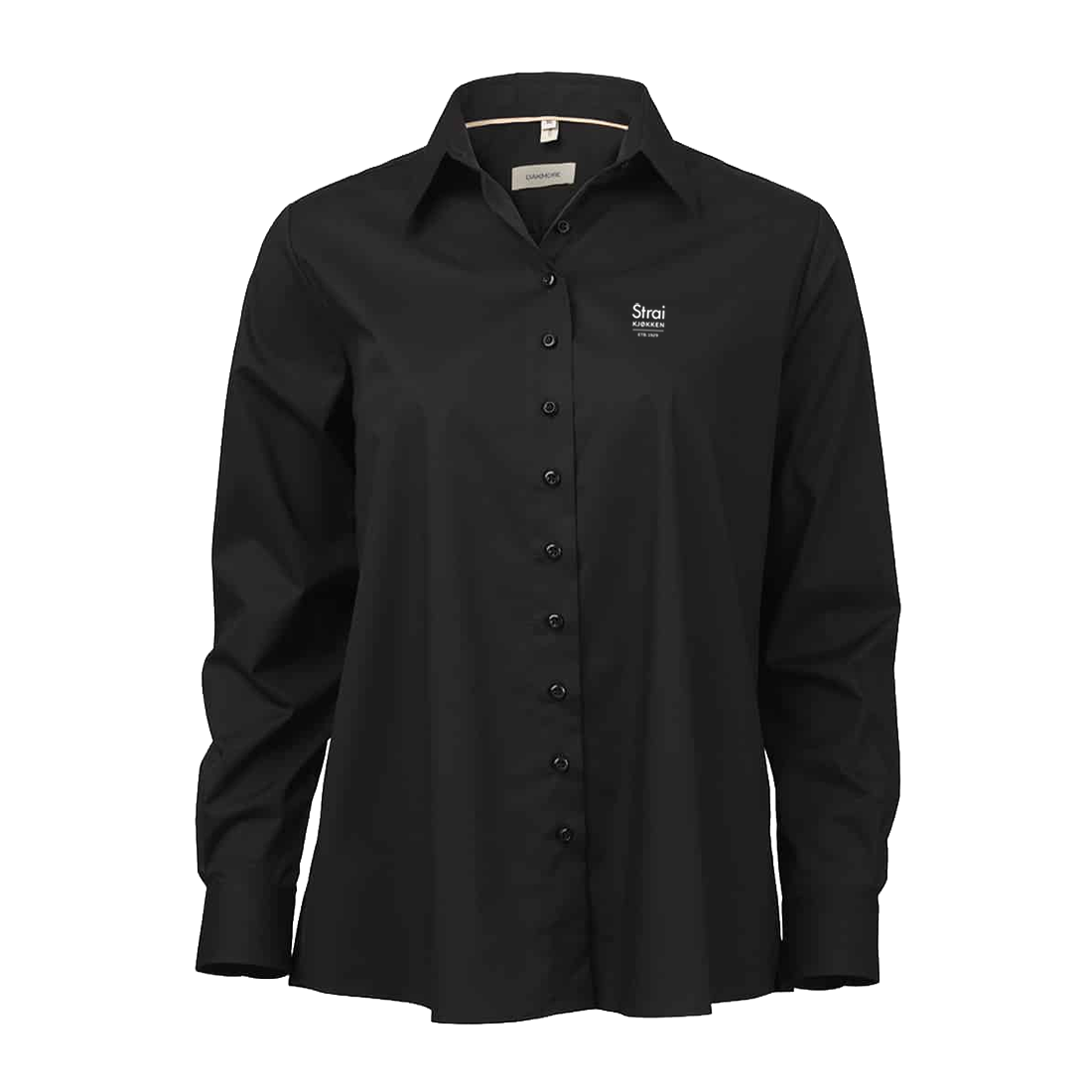 Den har en cutaway-krage og OAKMOREs standardknapper laget av resirkulert polyester med matchende knappetråd.