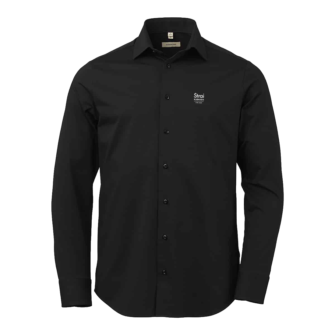 Den har en cutaway-krage og OAKMOREs standardknapper laget av resirkulert polyester med matchende knappetråd.